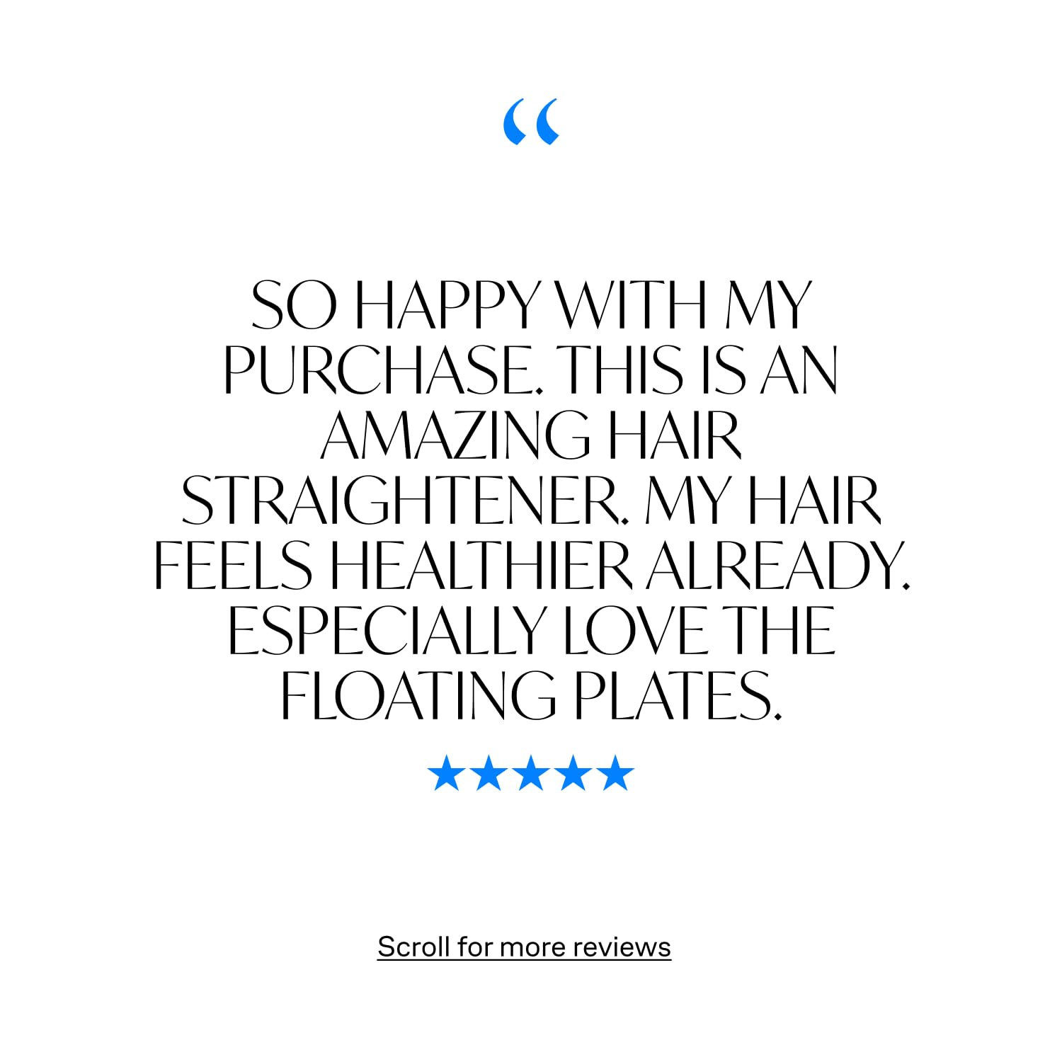 - FLOATING PLATES – Unsere mit Keramikmineralien angereicherten Floating Plates federn Stöße ab und minimieren so Widerstand und Reibung am Haar, um Spliss und Haarbruch zu reduzieren.
